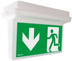 Prymat luminaire is supposed to indicate emergency escape routes and emergency exits with suitable pictograms. Additionally, the luminaire with fluorescent lamp can be used as illuminating fixture. Prymat can be adopted in public facilities or in workplaces and it is compatible with all emergency lighting systems offered by Hybryd.