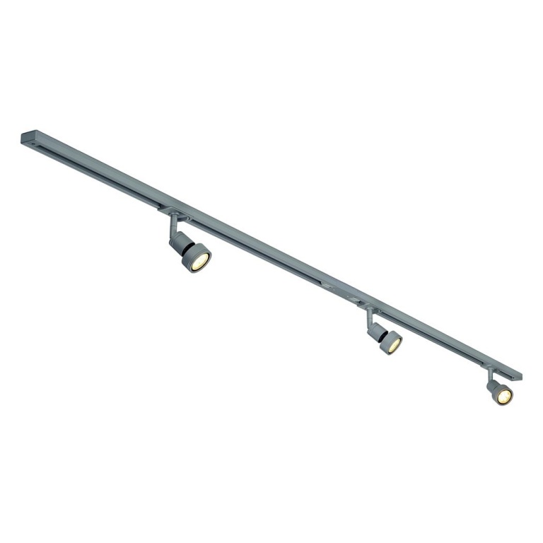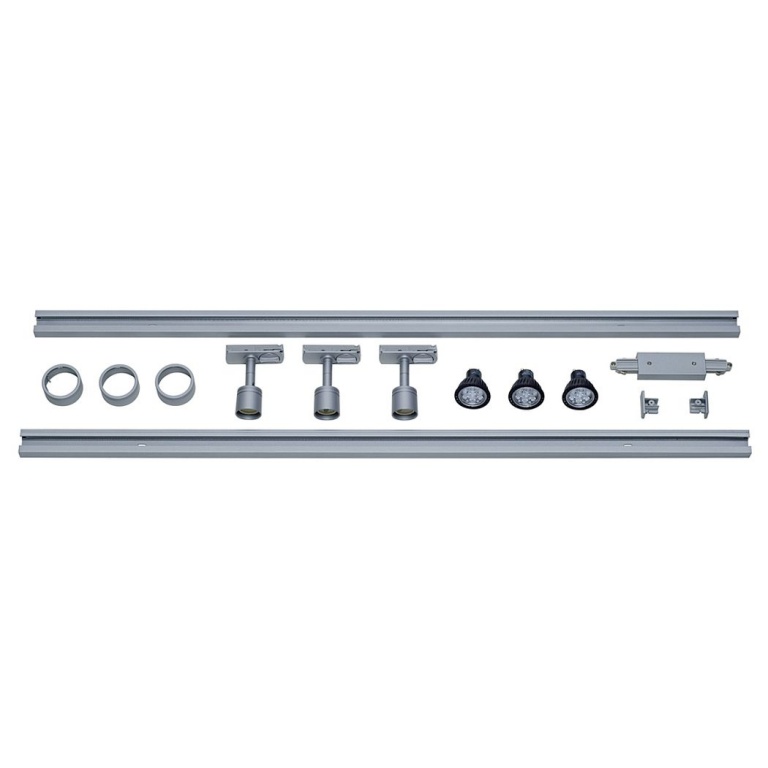 1-circuit high-voltage set 3, silvergrey, 2x1m, incl. 3x PURI spot and LED lamps