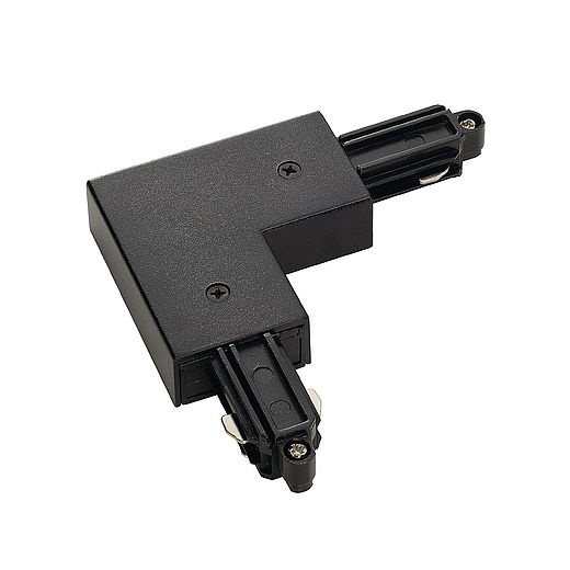 Corner connector with feed capability for the 1-circuit track system. Available in various colour versions, you can also choose the ground conductor's position left or right depending on your individual installation. More detailed information can be provided on request.