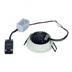 The innovative NEW TRIA LED downlight set appears elegant in its simplicity and effectiveness. Available in white or brushed aluminum, you can choose between a round or square shape. Equipped with a powerful, warm white COB LED with incorporated LED driver, this set meets the requirements of general lighting needs. Furthermore, it is adjustable by 30°. The electrical connection is made directly to 230V mains supply. This luminaire contains built-in LED lamps. EEK: A - A++. The lamps cannot be changed in the luminaire.