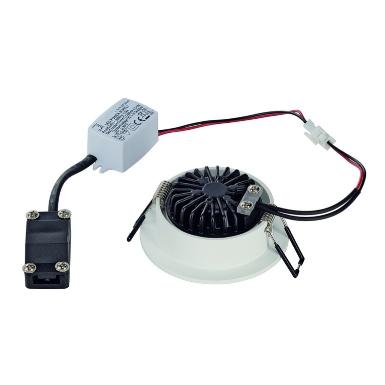 Protection class: IIColour: whiteMaterial: aluminiumRemark 1: LED driver includedWay of mounting: recessed ceiling mountingRemark 2: Only suitable for ceilings with a maximum thickness of 20 mmSuitable for lamps from EEC: ASuitable for lamps up to EEC: A++Light distribution type 1: directLight distribution type 3: rotationally symmetricHeight: 3.3 cmTilt range: 30 DegreeRemark 3: Energy labels in your language are available in the Service Area sub point DownloadAverage lifespan: 40000 HoursColour temperature: 3000 KelvinColour rendering index: > 80Luminous flux: 300 lmBeam angle: 38 Degree« hide more