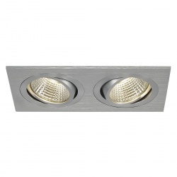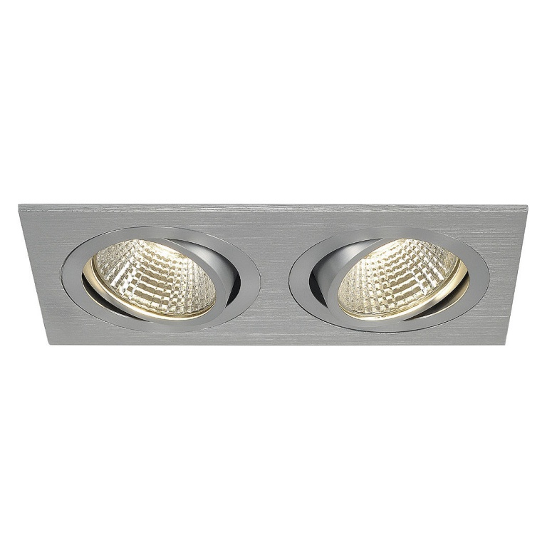 The innovative NEW TRIA LED downlight set appears elegant in its simplicity and effectiveness. It´s available in white or brushed aluminum. Equipped with two powerful, warm white COB LED with incorporated LED driver, this set meets the requirements of general lighting needs. Furthermore, it is adjustable by 30°. The electrical connection is made directly to 230V mains supply. This luminaire contains built-in LED lamps. EEK: A - A++. The lamps cannot be changed in the luminaire.
