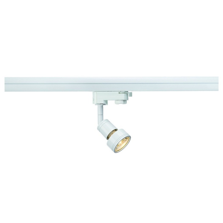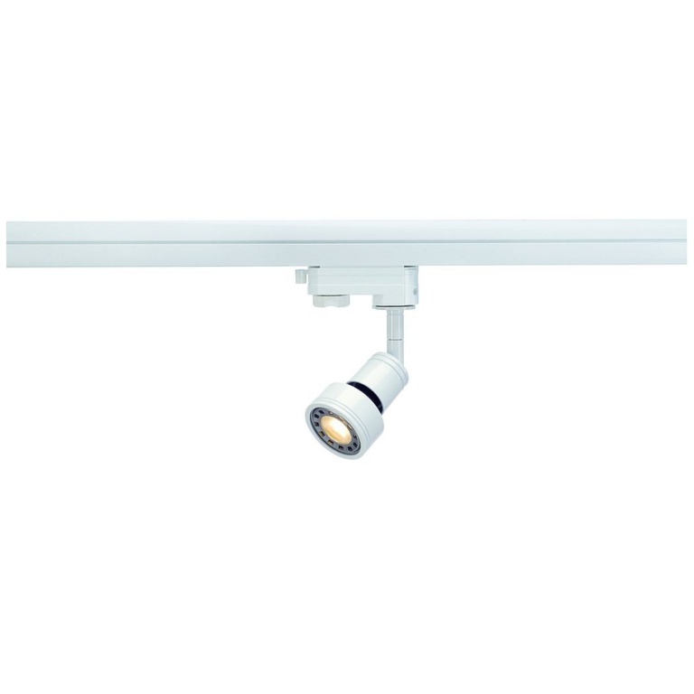 Colour: white Material: aluminium Remark 1: Decoring for GU10 lamps included Way of mounting: track system mounting Remark 2: Suitable for the use of ES111 lamps Suitable for lamps from EEC: E Suitable for lamps up to EEC: A++ Light distribution type 1: direct Light distribution type 3: rotationally symmetric Height: 9 cm Tilt range: 85 Degree Length: 8 cm Width: 3.5 cm Remark 3: Energy labels in your language are available in the Service Area sub point Download Rotation range: 340 Degree « hide more