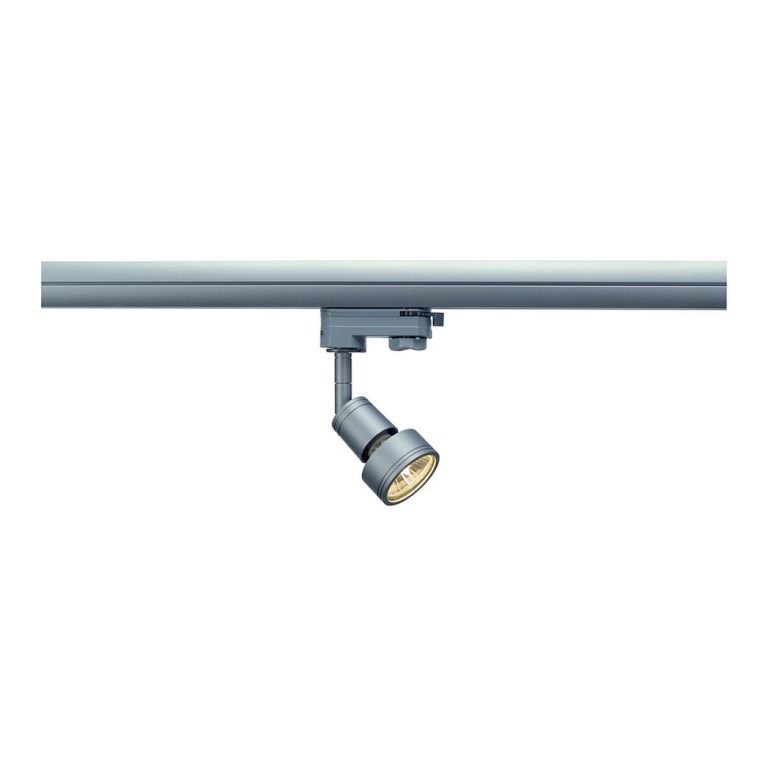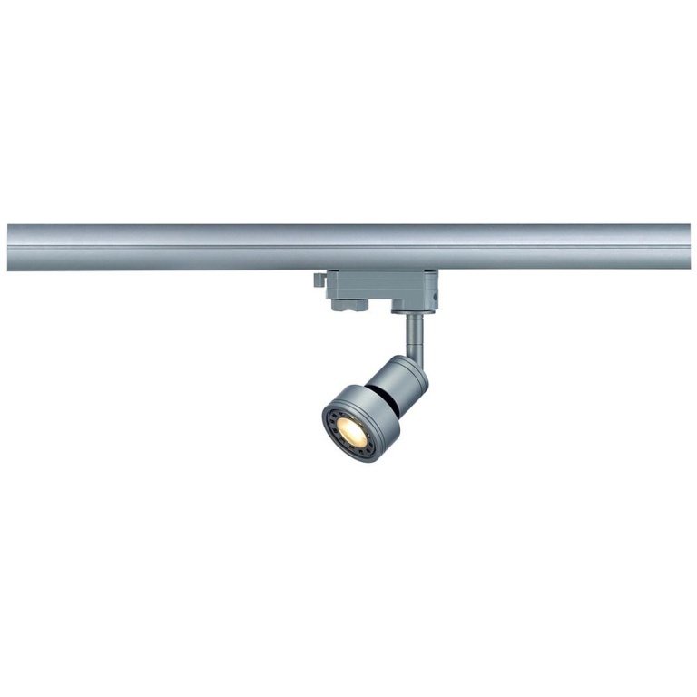 Colour: silvergrey Material: aluminium Remark 1: Decoring for GU10 lamps included Way of mounting: track system mounting Remark 2: Suitable for the use of ES111 lamps Suitable for lamps from EEC: E Suitable for lamps up to EEC: A++ Light distribution type 1: direct Light distribution type 3: rotationally symmetric Height: 10 cm Tilt range: 85 Degree Length: 5 cm Remark 3: Energy labels in your language are available in the Service Area sub point Download Rotation range: 350 Degree « hide more