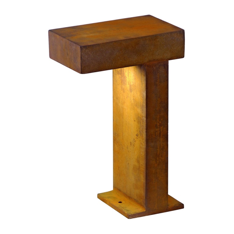 Colour: rust-brownMaterial: FeCSi-steelRemark 1: Mounting set includedWay of mounting: surface floor mountingRemark 2: Each luminaire is uniqueSuitable for lamps from EEC: BSuitable for lamps up to EEC: A++Light distribution type 1: directHeight: 40 cmLength: 25 cmWidth: 15 cmRemark 3: Energy labels in your language are available in the Service Area sub point Download« hide more