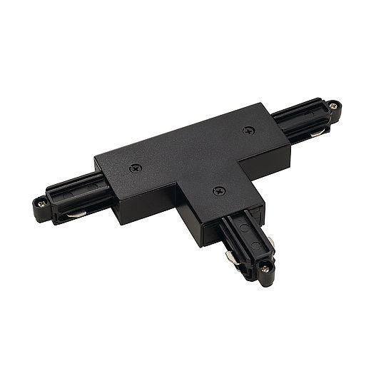 SLV T-connector for 1-circuit HV-track, surface-mounted, black, ground left