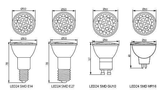 LED lamp LED24 SMD MR16-CW LED Bulbs GU5.3 / MR16