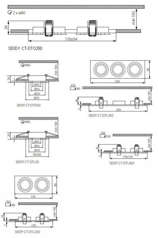 Ceiling lighting point luminaire SEIDY CT-DTL-AL Recessed Ceiling Luminaires