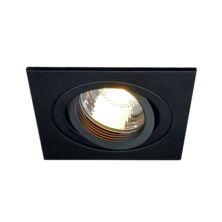NEW TRIA I GU10 downlight, square, matt black, max. 50W, incl. metal-plate springs